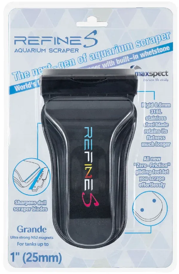 Recommended glass thickness for standard aquarium scraper: ⅜" - ⅝" (9-15mm)
