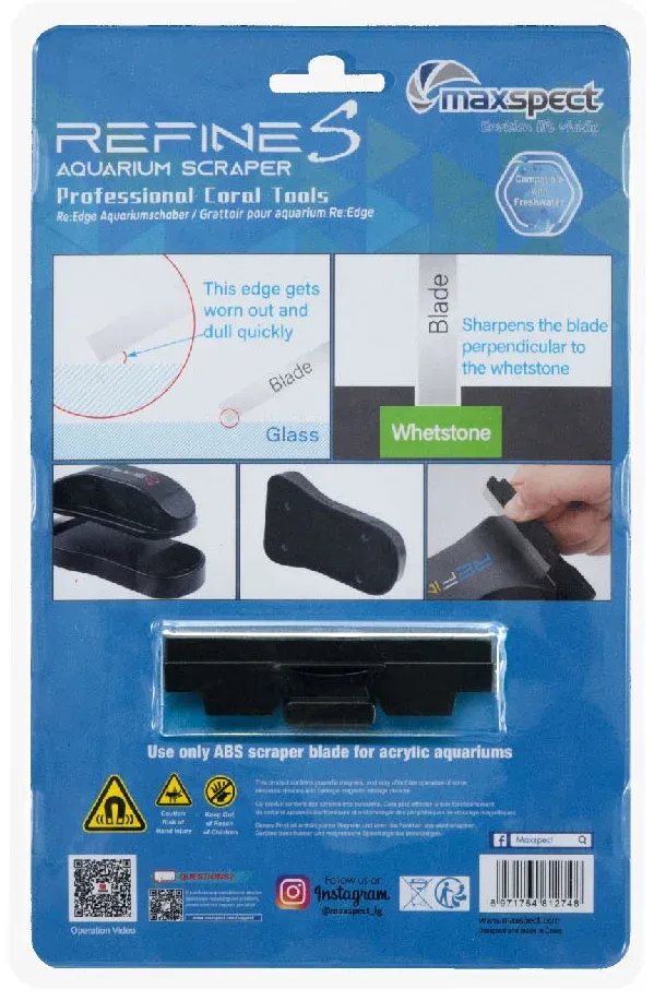 Recommended glass thickness for standard aquarium scraper: ⅜" - ⅝" (9-15mm)